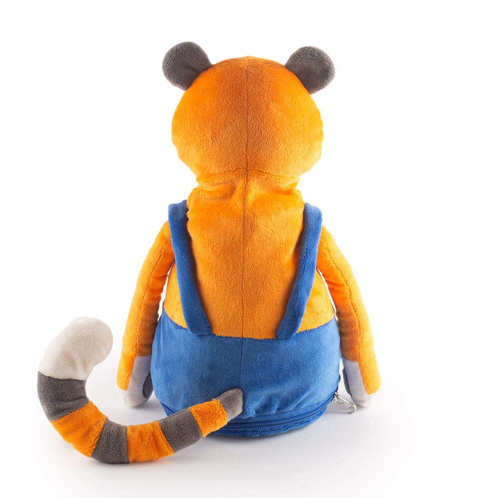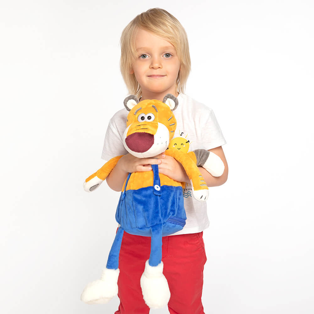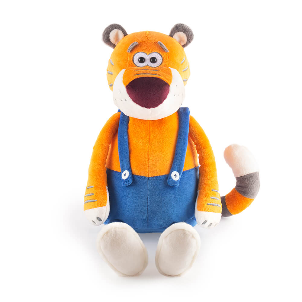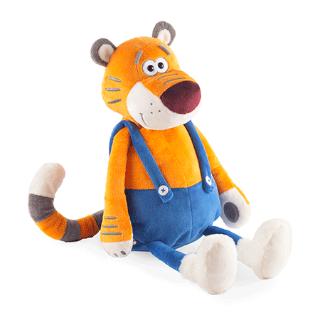 У тигра в темно‑голубых штанишках на лямках и мягких белоснежных валенках есть свой секретик. В потайном отделении на молнии он хранит сладкий сюрприз — набор самых вкусных конфет для лучшего друга!